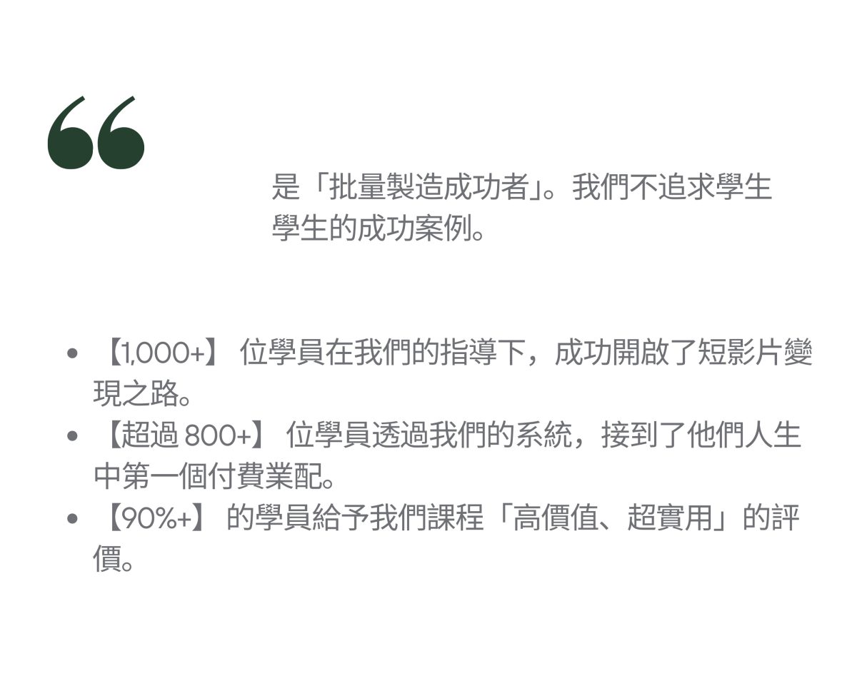 2. 實戰資產:您將親手打造一個具有明確變現潛力的個人自媒體賬號,並產出高質量的作品集(Portfolio)。